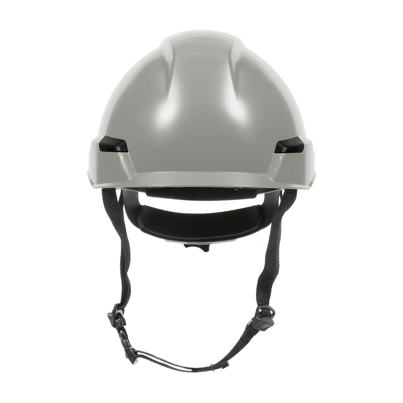 The ANSI Certified Type II, Class E industrial climbing helmet offers superior impact protection while working at heights or in confined spaces. Features a super lightweight Polycarbonate/ABS shell and a integrated hi-density inner shell foam liner that work in conjunction with the highly adjustable 4-point nylon inner suspension to provide exceptional protection from top of head and lateral impact hazards.